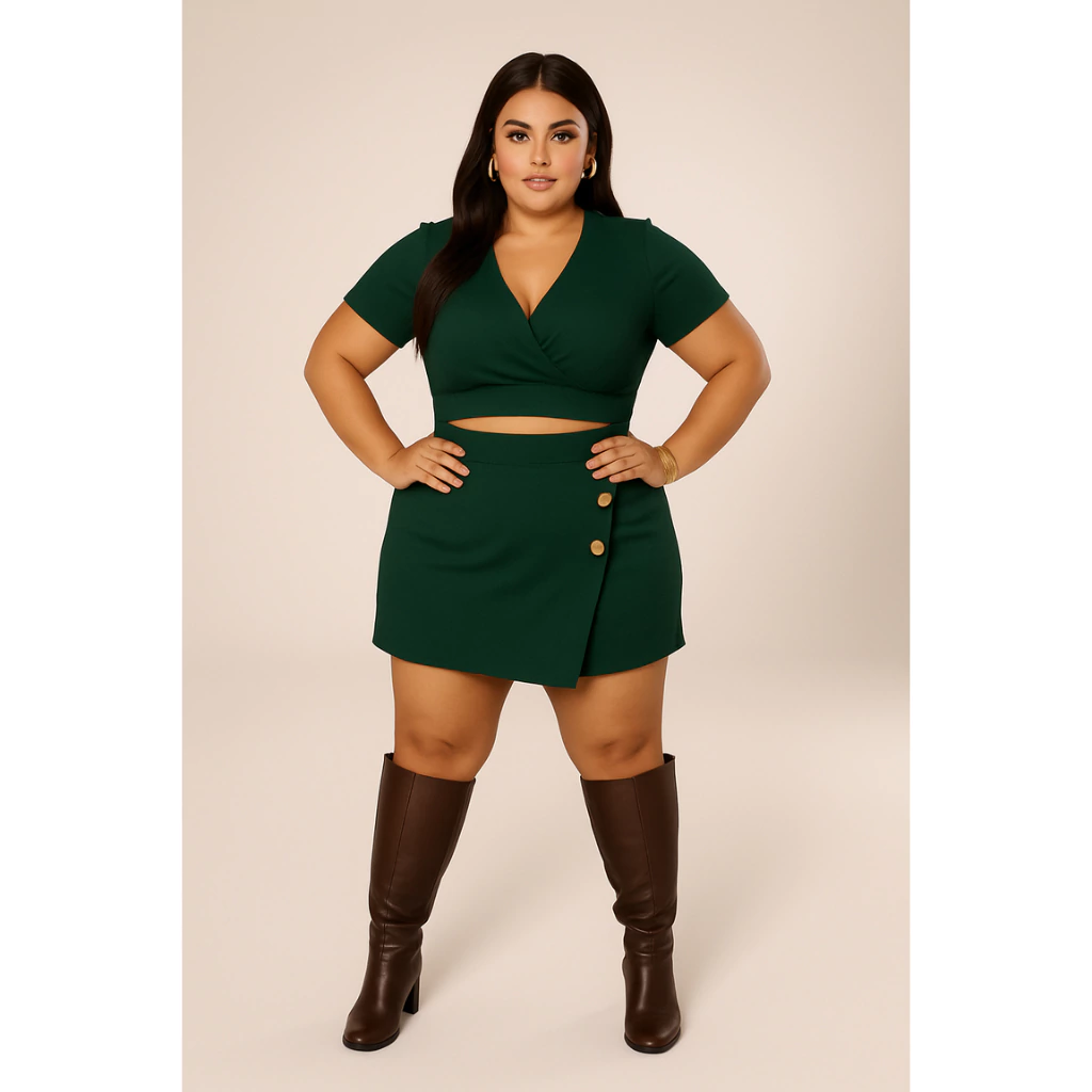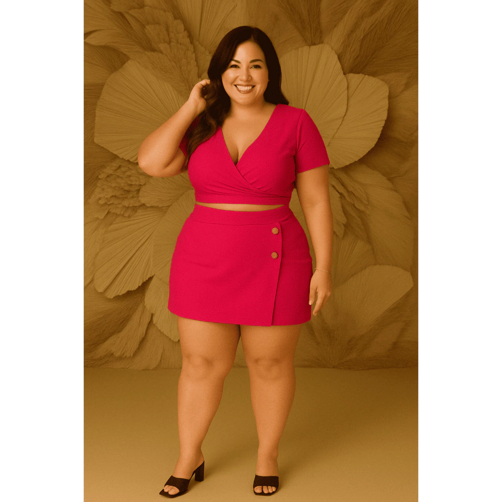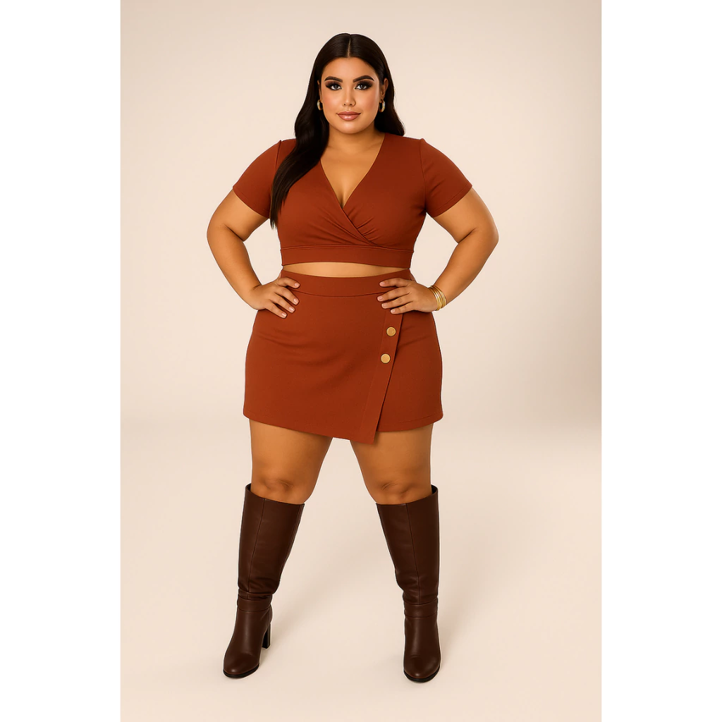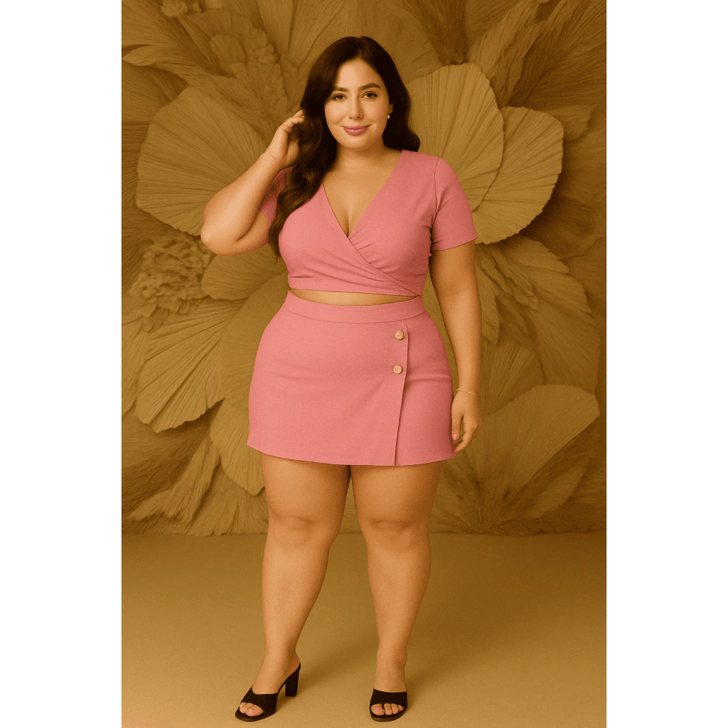Conjunto Plus Size Feminino - Short saia e Cropped Moda Verão G ao G1(Bege,G1 (48 ao 52))