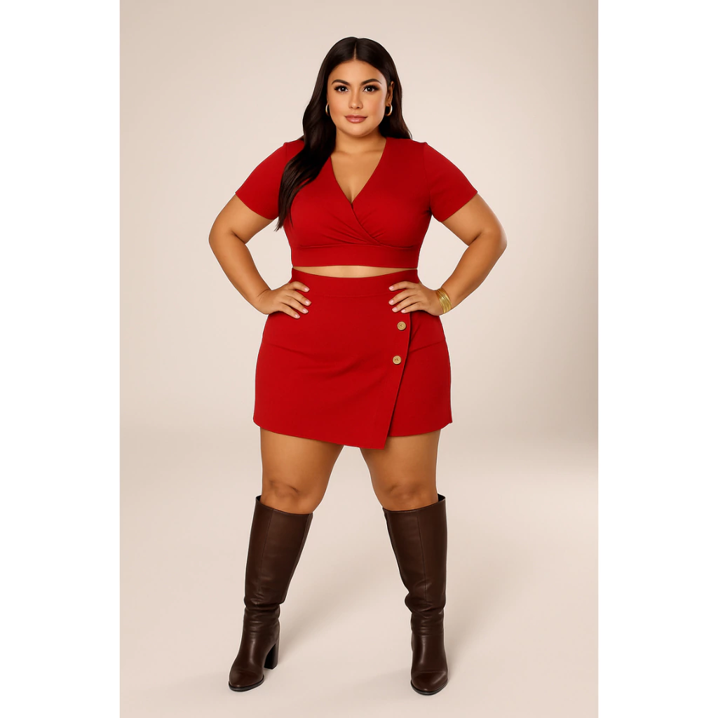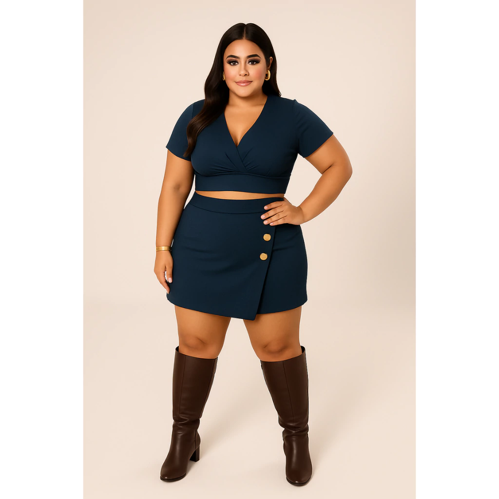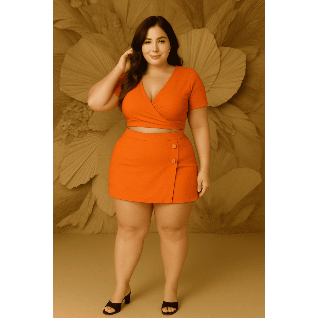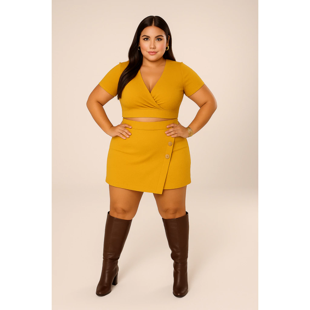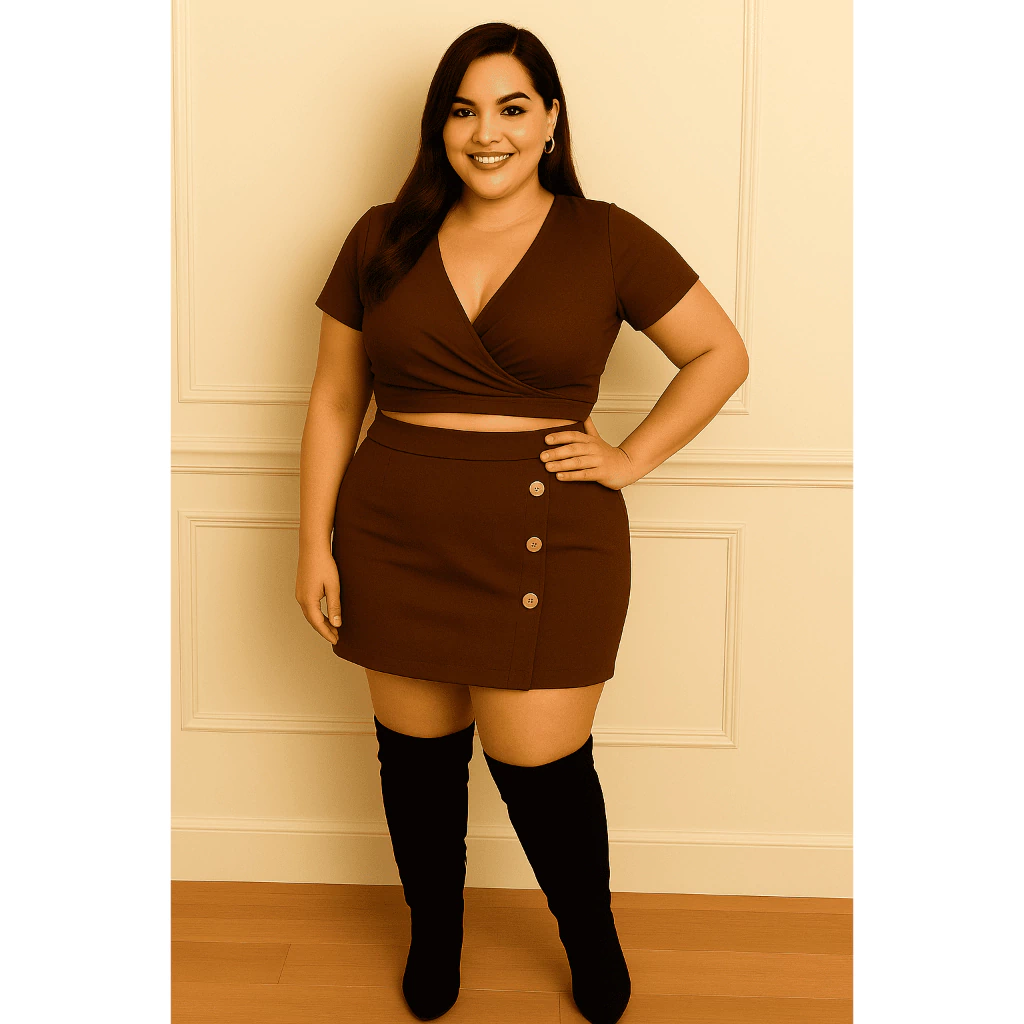 Conjunto Plus Size Feminino - Short saia e Cropped Moda Verão G ao G1(Bege,G1 (48 ao 52))