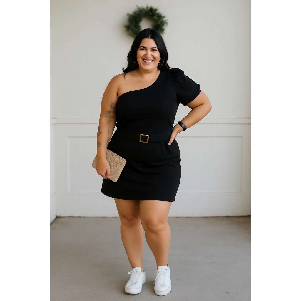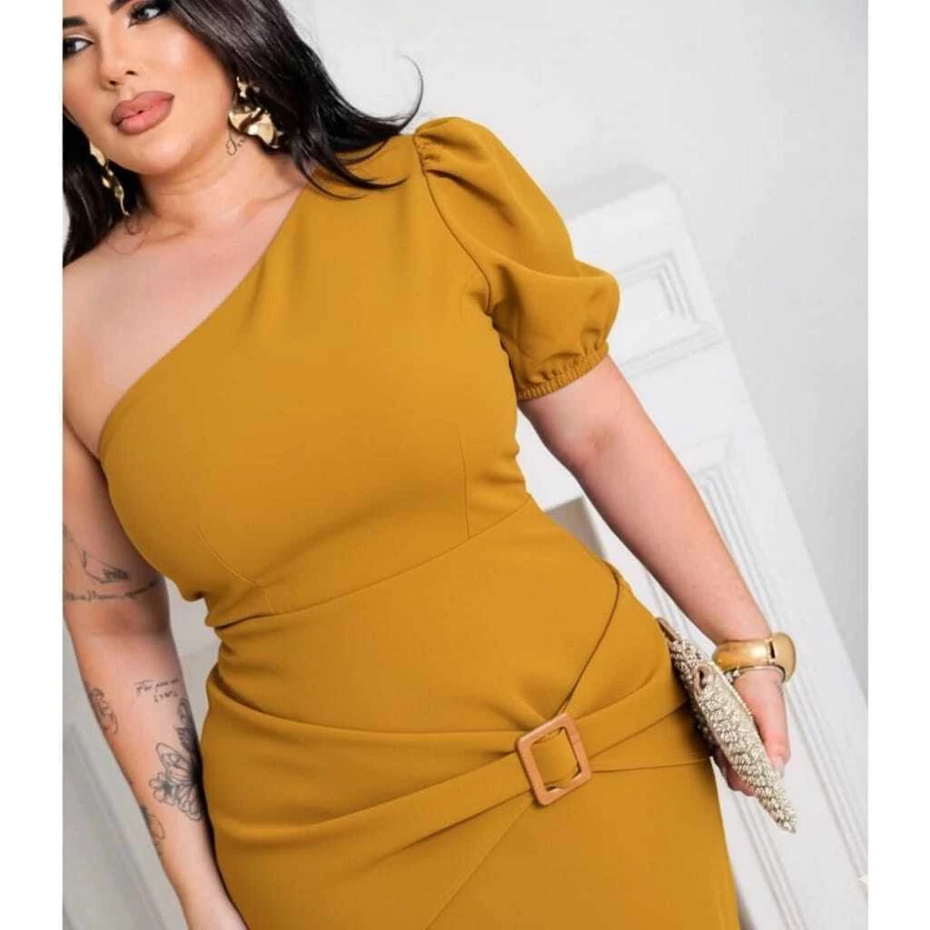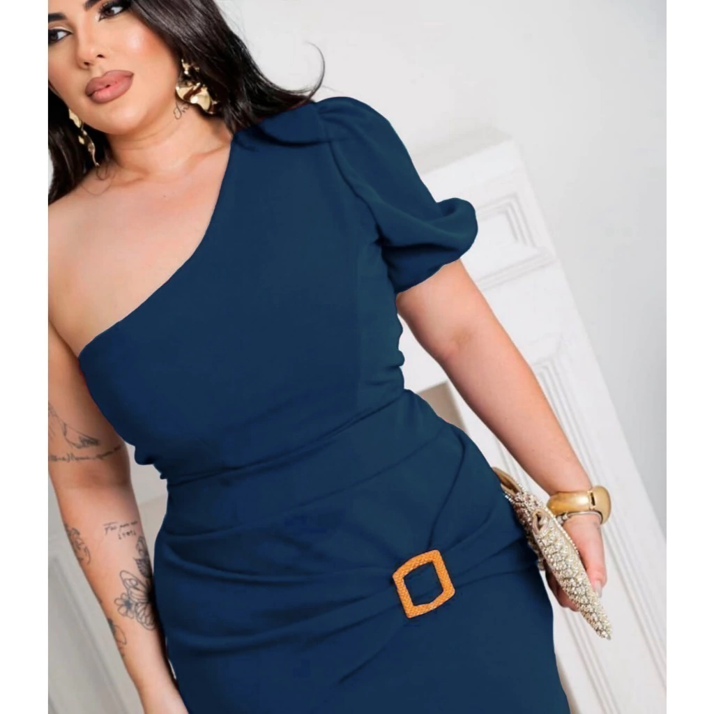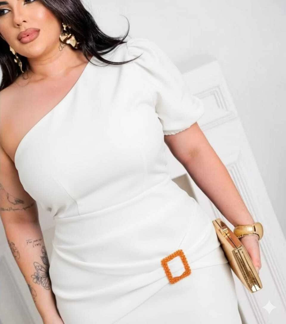 Descubra o Conjunto Plus Size um ombro só em montaria premium – peça elegante que modela a cintura, tem manga bufante moderna e detalhe de fivela no drapeado para acabamento impecável. O tecido é encorpado, com alta elasticidade e zero transparência, ideal para festa, casamento, formatura, Natal e Réveillon.