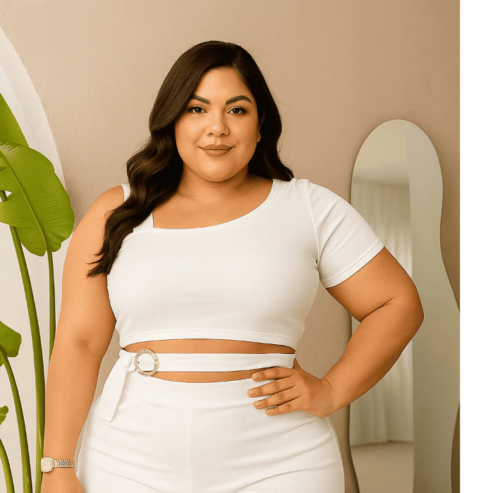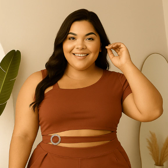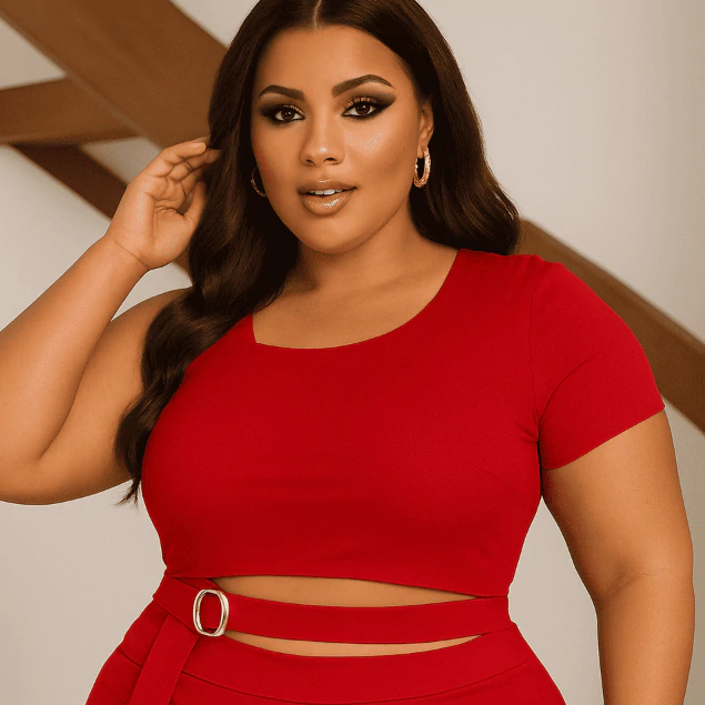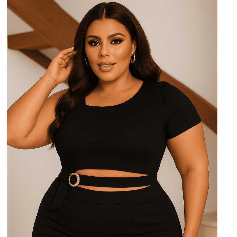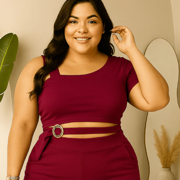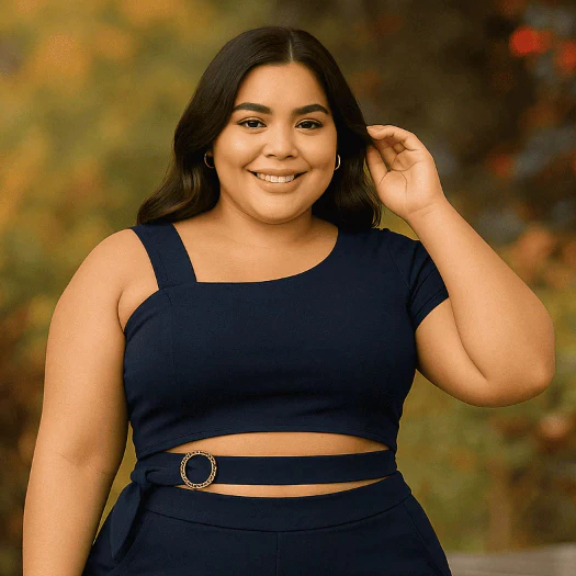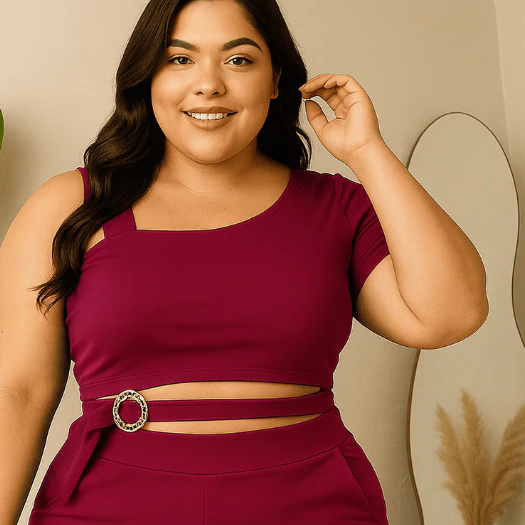 Cropped Plus Size Feminino com Argola Assimétrico – Moda Verão, Estilo Moderno, Tecido Confortável G ao G2, Promoção.(Azul Carbono,48)