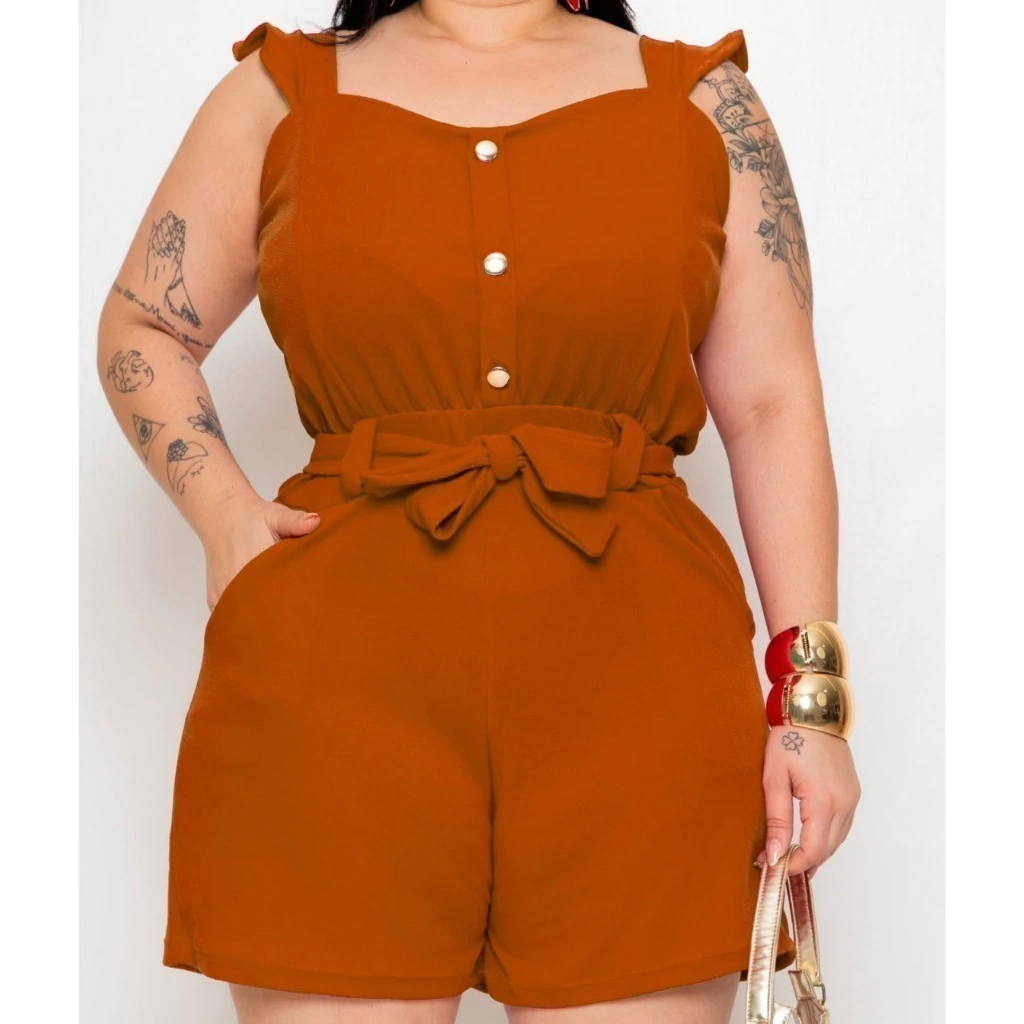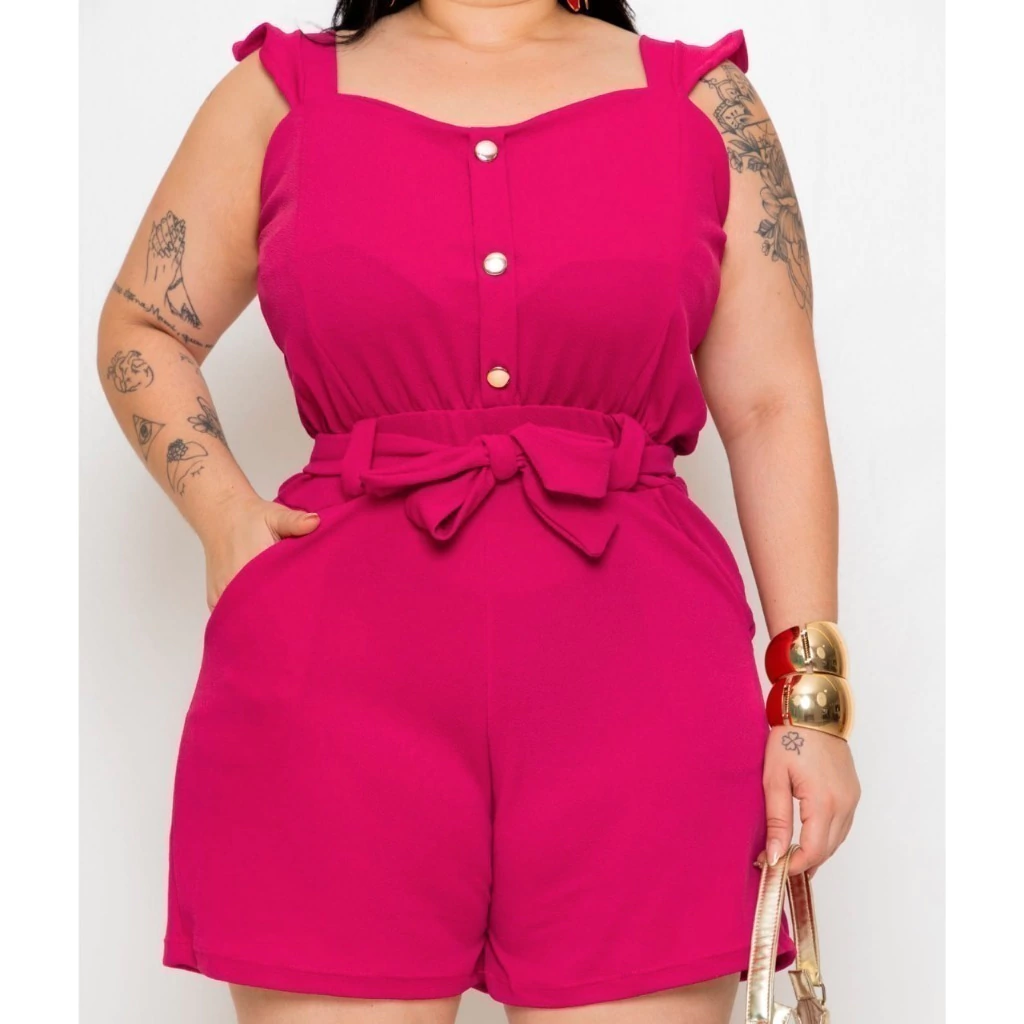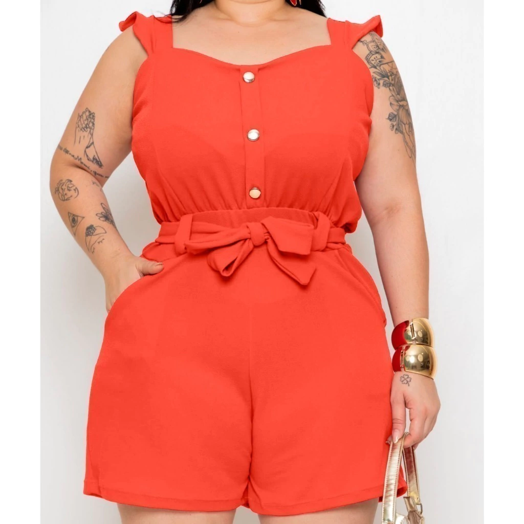 Macaquinho Plus Size Feminino Confortavel GG Feminino, Estilo para Festas e para Cotidiano(Vermelho,GG (44 ao 48))