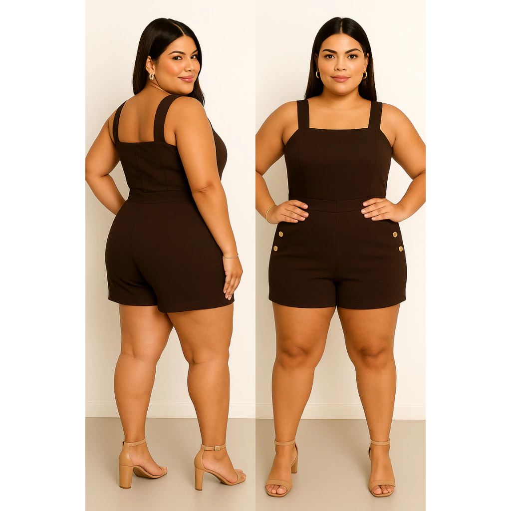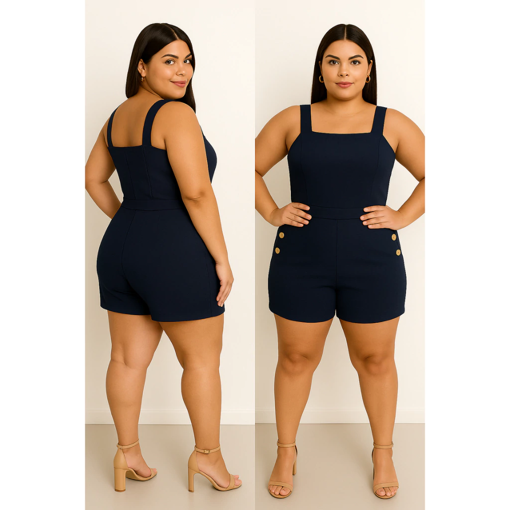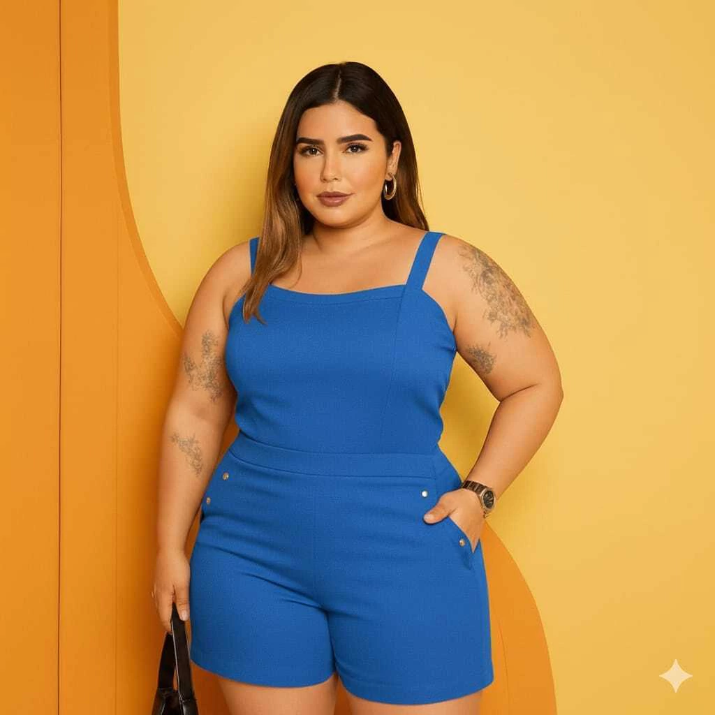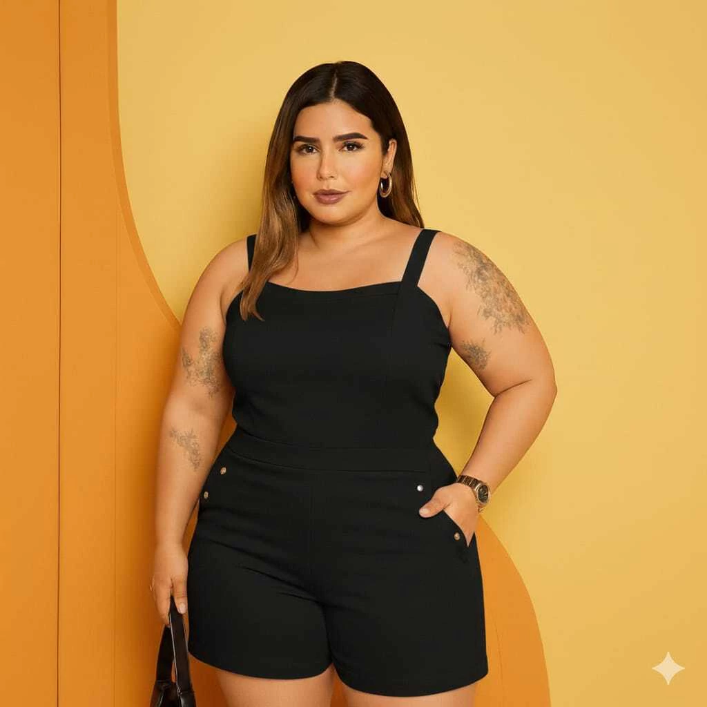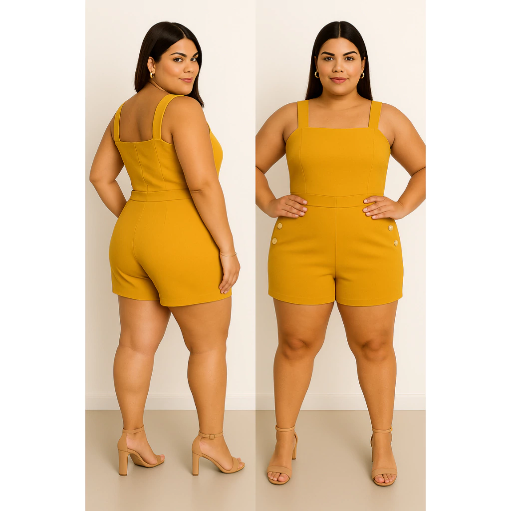 Macaquinho Plus Size Feminino GG Todas as Ocasiões! Confortável , Cotidiano para o dia a dia.(Amarelo Mostarda,GG (44 ao 48))