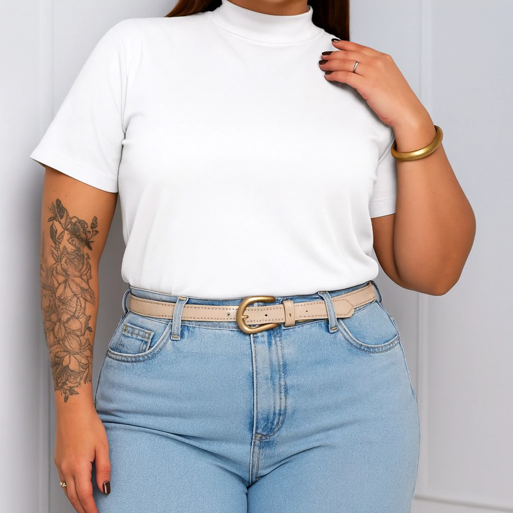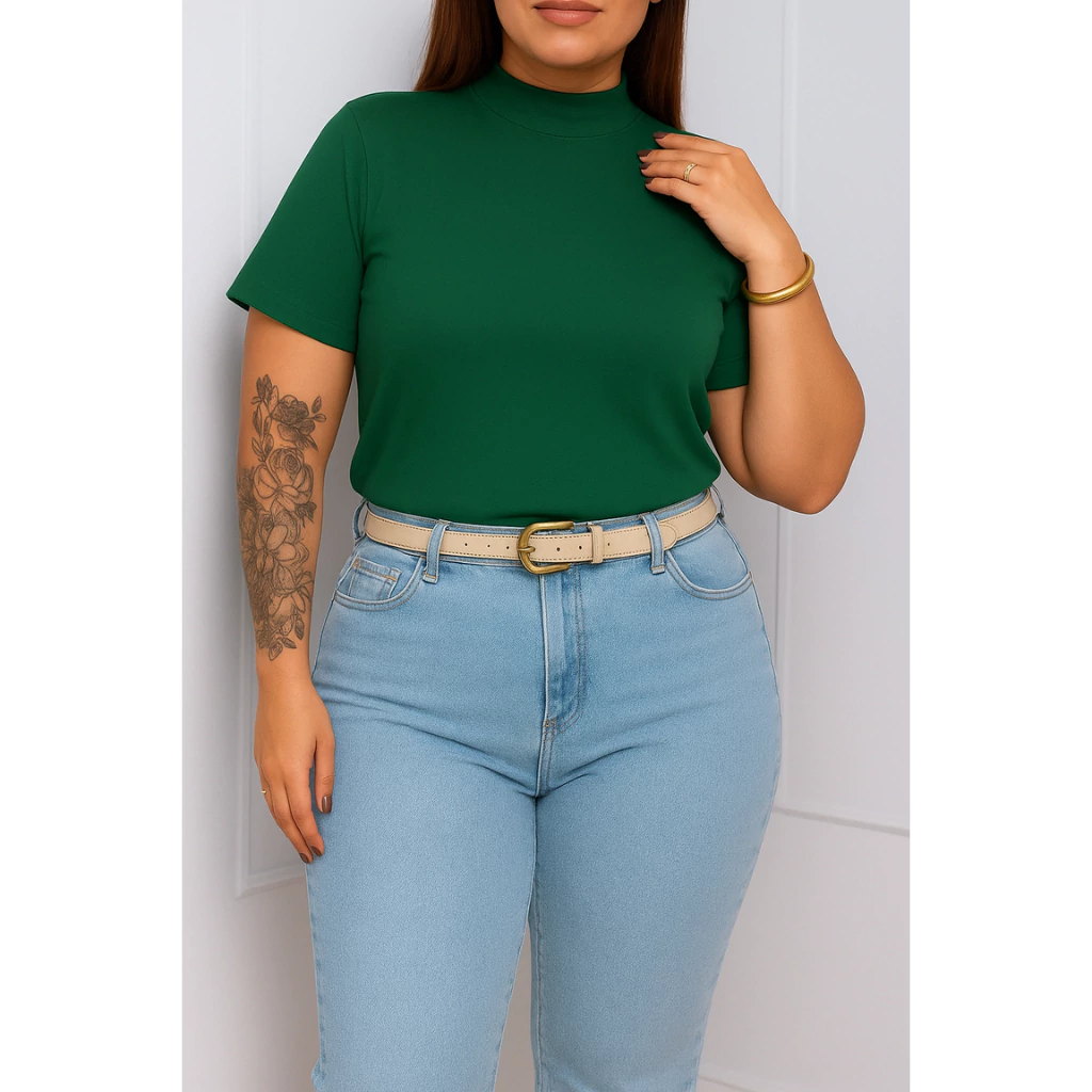 T-Shirt Plus Size Feminina Gola Alta 100% Algodão | Camiseta Básica GG ao G4 (Pronta Entrega)(Verde,G3)